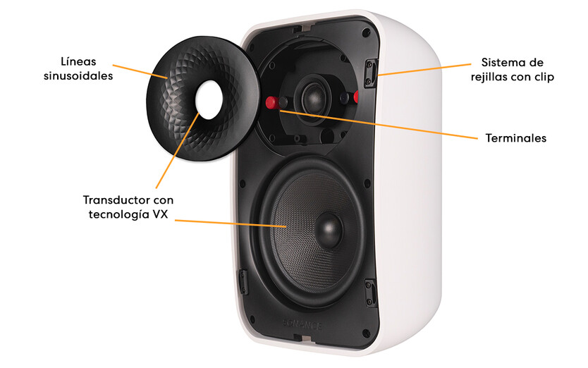 - Transductor con tecnología VX: similar a las bocinas Visual Experience, nos da mayor fidelidad y desempeño.